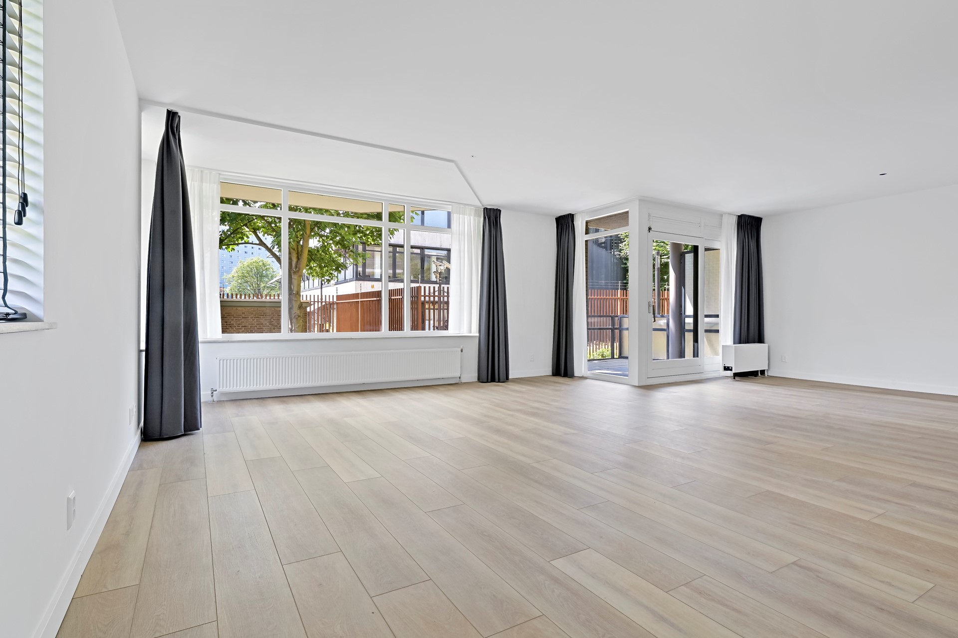 Beautifully renovated ground floor apartment of approx. 110m2 with 2 bedrooms, 1 bathroom, 2 terraces, private storage room, private parking space, and communal bicycle storage located in one of the most beautiful locations in The Hague.