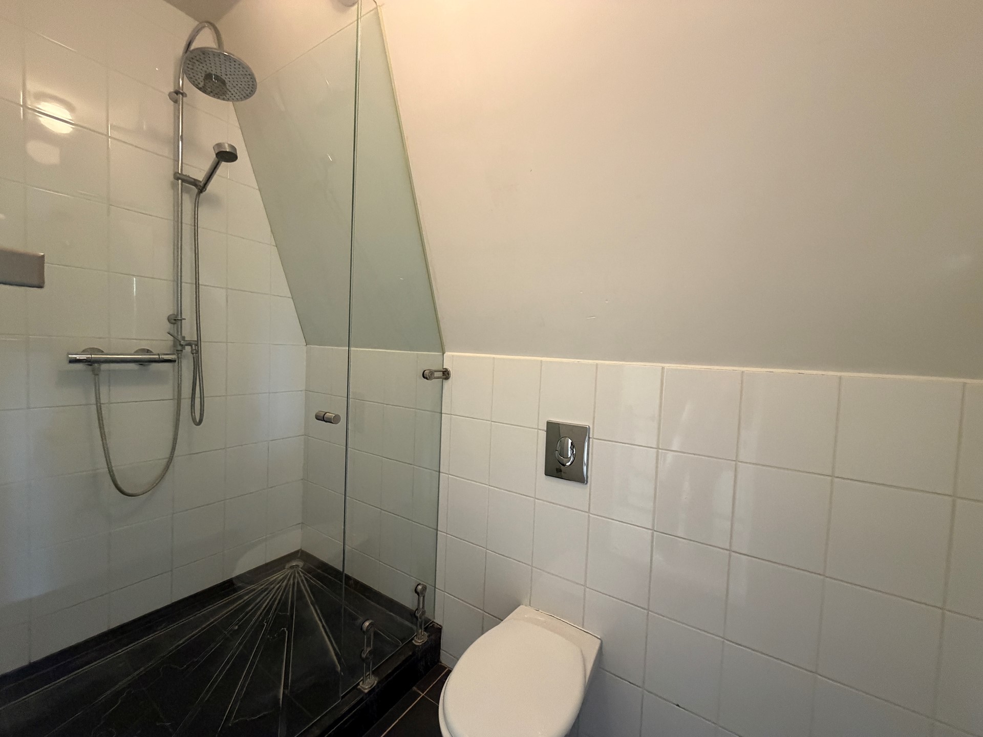 De badkamer is centraal op deze verdieping gelegen en voorzien van een inloopdouche, wastafel en toilet.