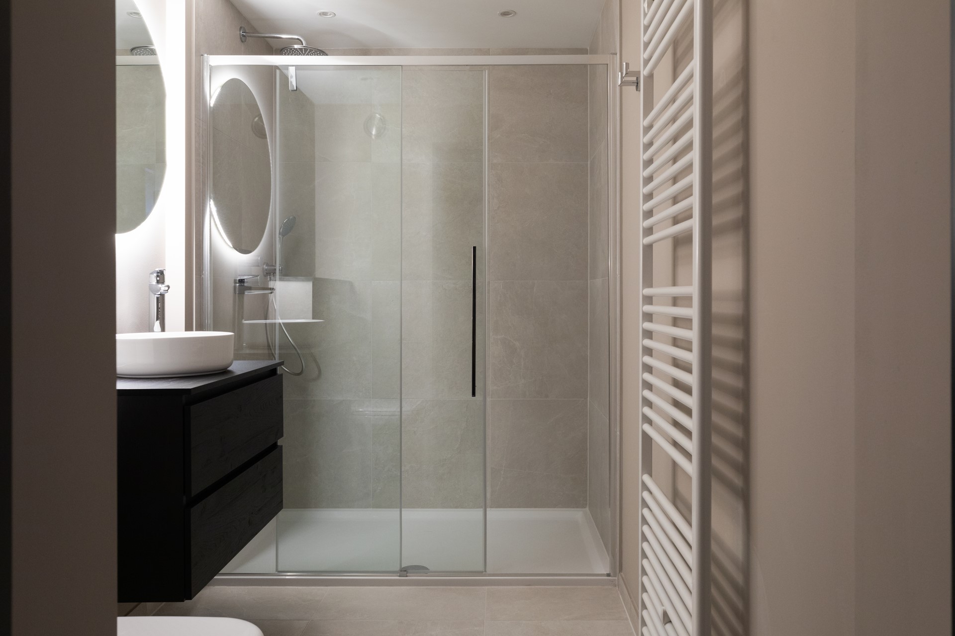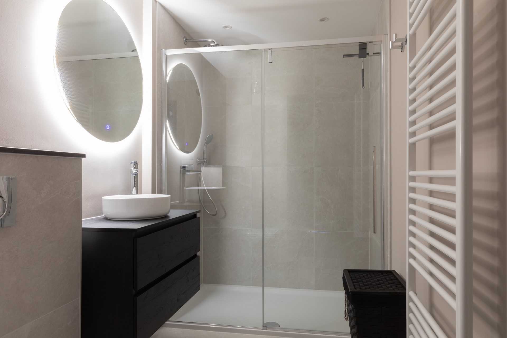 | Badkamervoorzieningen Badkamer 1 | Inloopdouche, Toilet, Wastafelmeubel |