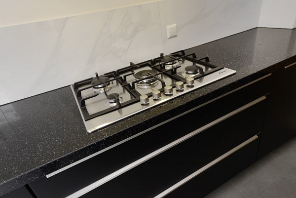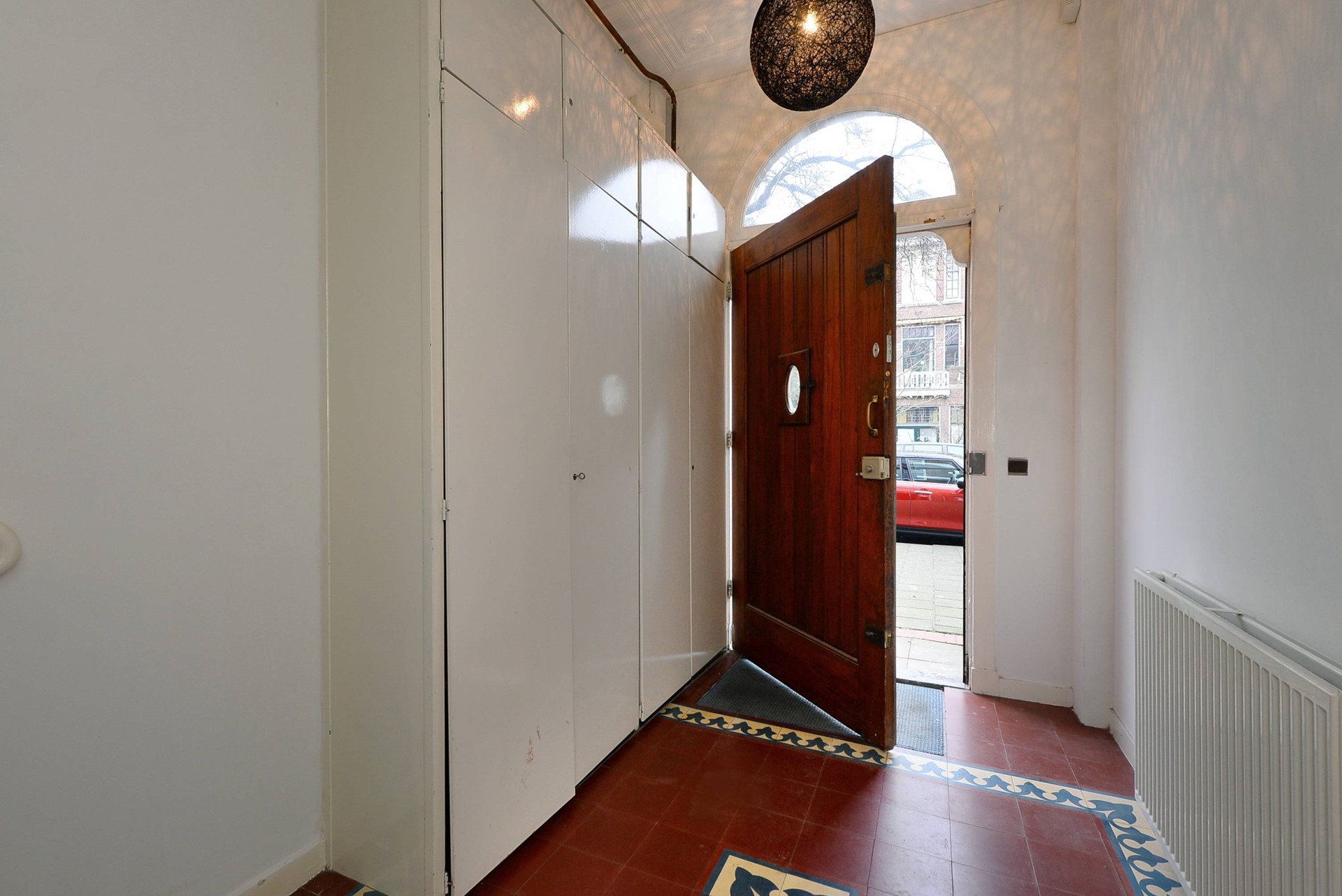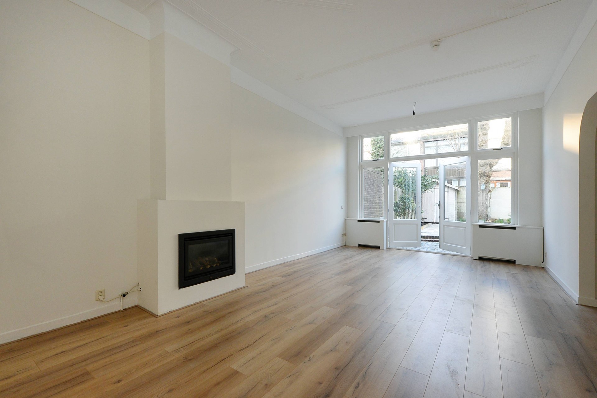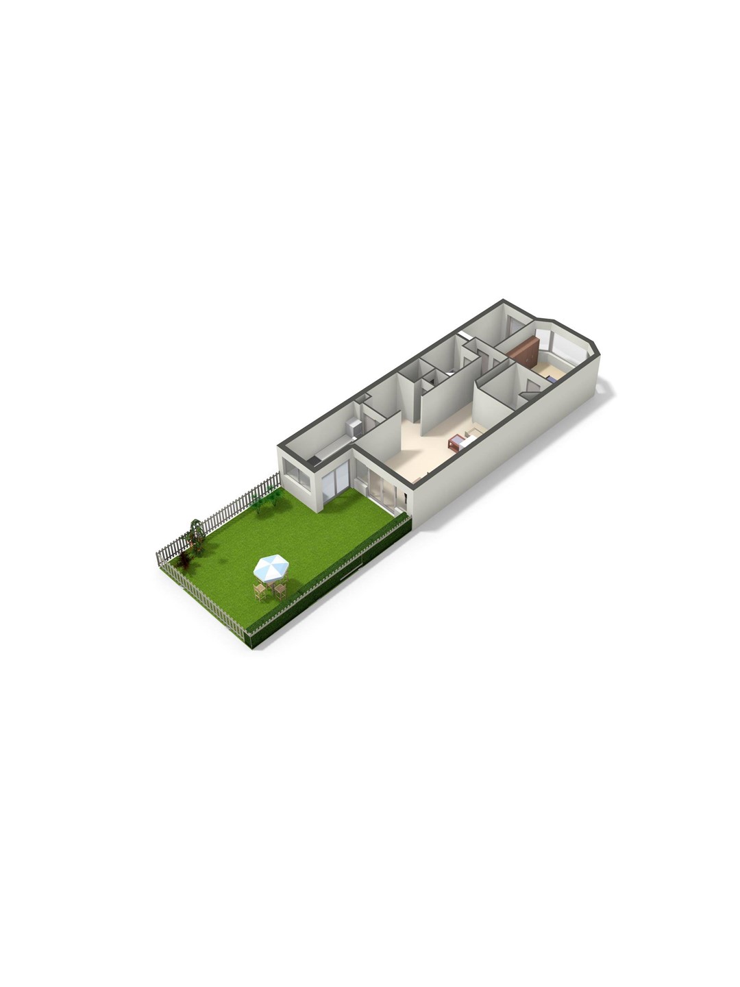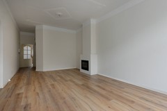 De gang met garderobe komt uit in de ruime en zeer lichte woonkamer die uitkijkt op de tuin. De moderne keuken heeft een volledige aanvulling van apparatuur zoals; koelkast, vriezer, vaatwasser, combi-oven, wasmachine, gasfornuis en afzuigkap. De zwarte kasten, luxe aanrechtblad en hardstenen vloer maken het geheel tot een moderne en strakke keuken. De ruime slaapkamer aan de voorzijde van het appartement verwent de huurder met een grote inloopkast. De badkamer is voorzien van een douche, ligbad, wastafel en toilet.