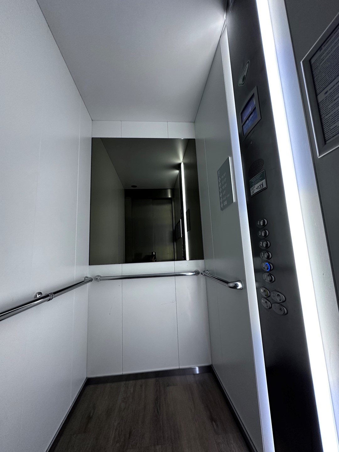 Entree appartementen complex, bellen tableau, hal, lift naar de 3e verdieping.