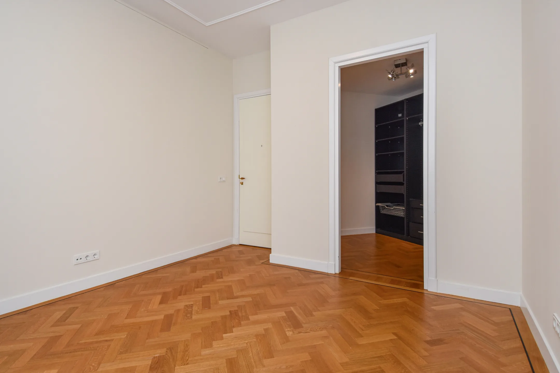 Door het gehele appartement ligt een fraaie visgraatvloer van eikenhout, die zorgt voor een warme en tijdloze uitstraling.