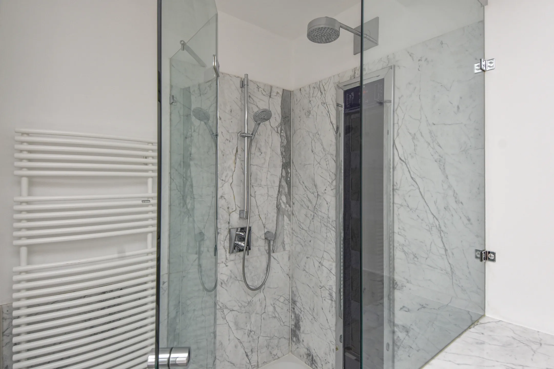 De entree van het gebouw bestaat uit een representatieve hal met een statig trappenhuis en een moderne lift. Op de tweede verdieping bevindt zich de toegang tot het appartement.