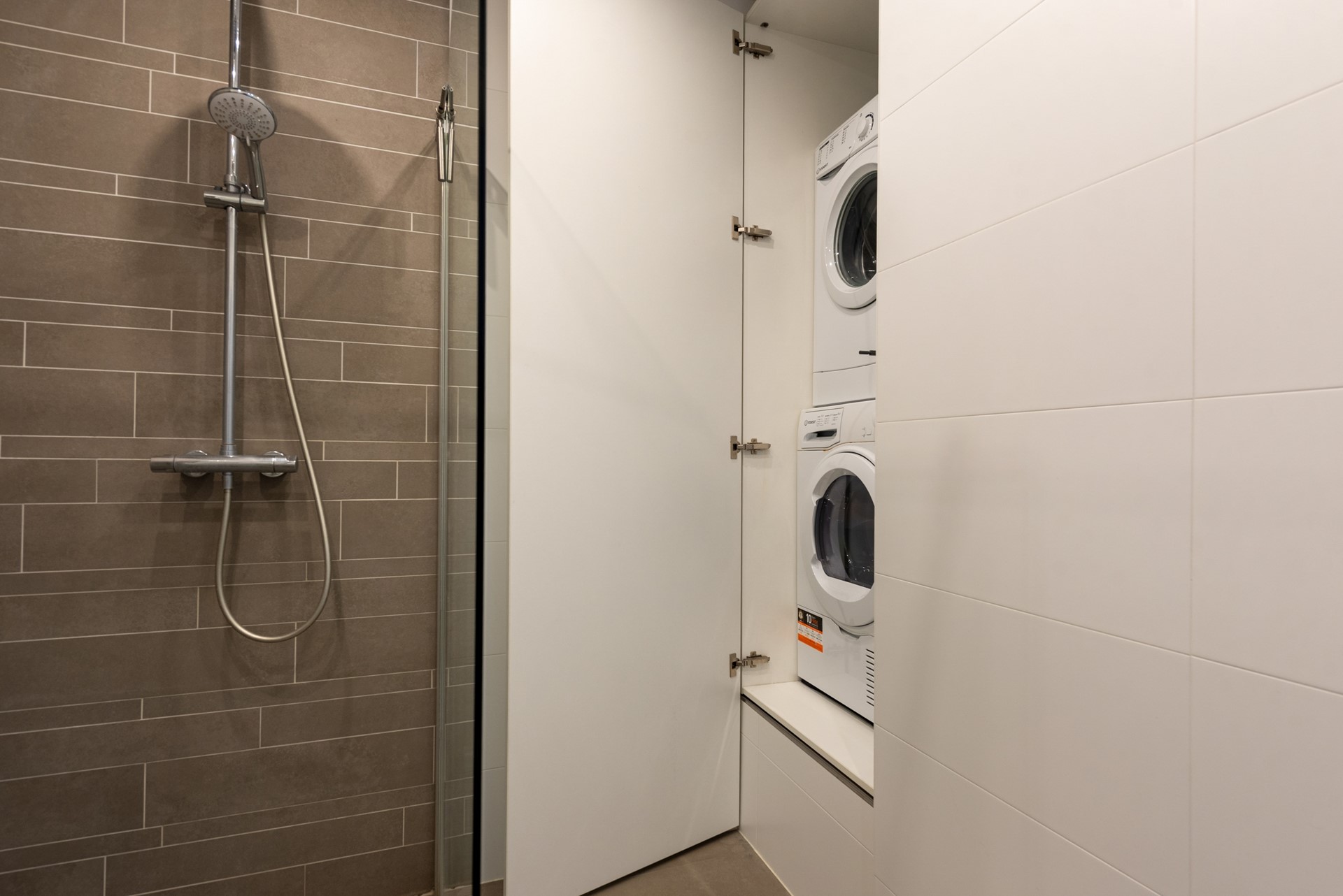 Aan de voorzijde bevindt zich een ruime slaapkamer; aan de achterzijde ligt een praktische studeerkamer. De moderne badkamer beschikt over een inloopdouche, wastafelmeubel, handdoekradiator en een kast voorzien van wasmachine en droger. Het separate toilet met fonteintje is gelegen naast de studeerkamer.