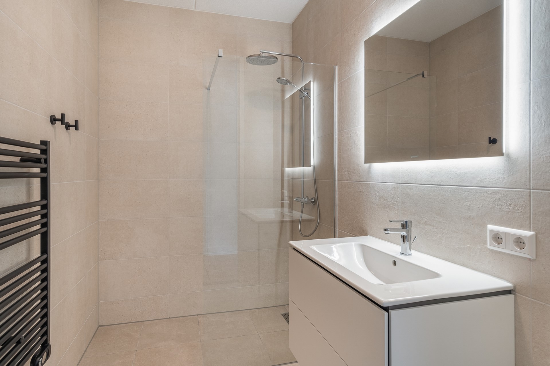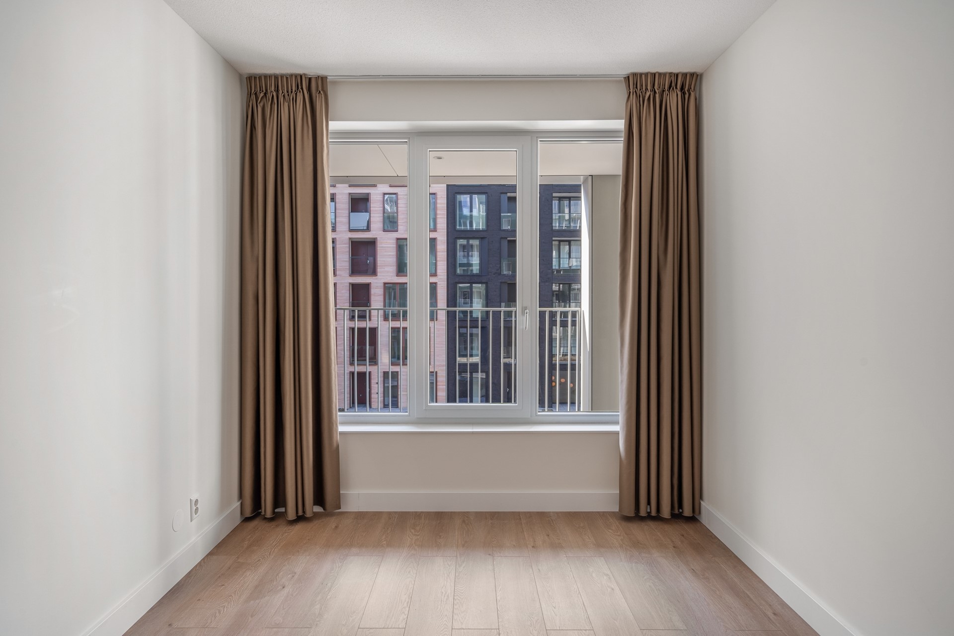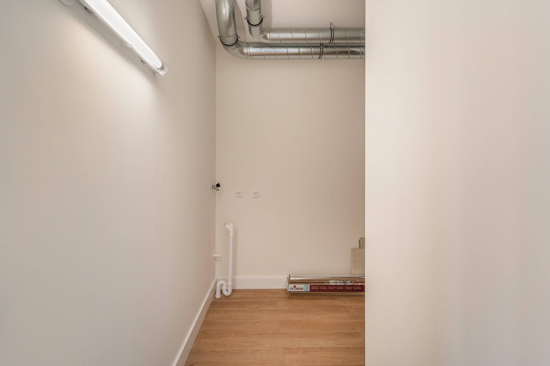 Gemeenschappelijke entree, lift/trappenhuis naar vijfde verdieping. Entree appartement, hal, slaapkamer, separaat toilet, technische ruimte met aansluiting voor wasmachine en droger, hoogwaardig afgewerkte badkamer met inloop (regen)douche, ruime woonkamer met veel natuurlijke lichtinval door de hoge raampartijen welke tevens toegang biedt tot het balkon, luxe keuken voorzien van onder andere inductiekookplaat met afzuiging, koelkast met vriesvak, combi oven/magnetron en vaatwasser. De woning is volledig voorzien van vloerverwarming -en koeling.