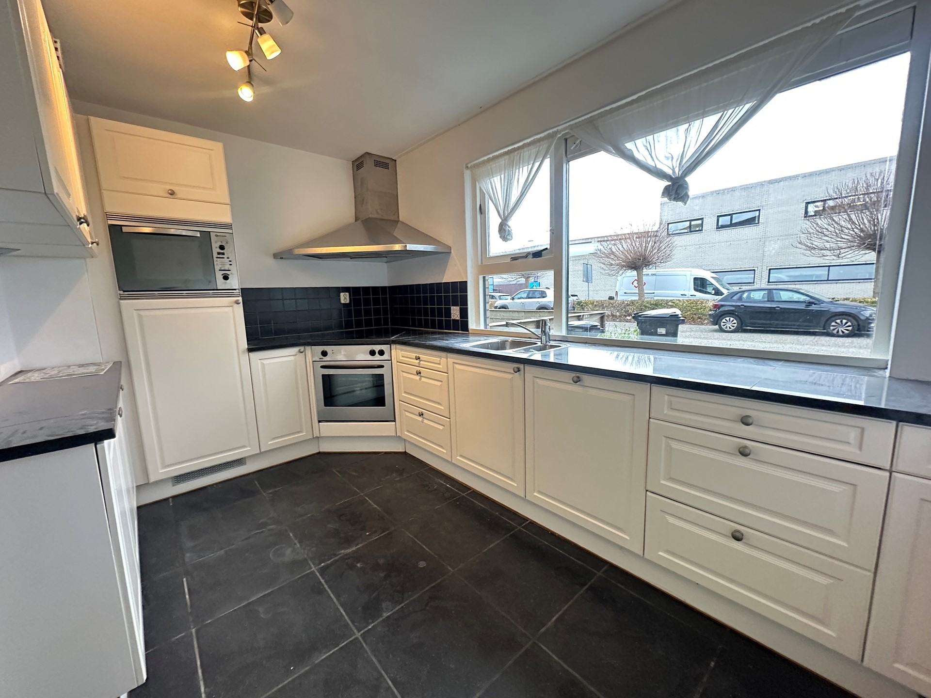 - open keuken met diverse inbouwapparatuur (oven, magnetron, kookplaat, vaatwasmachine)