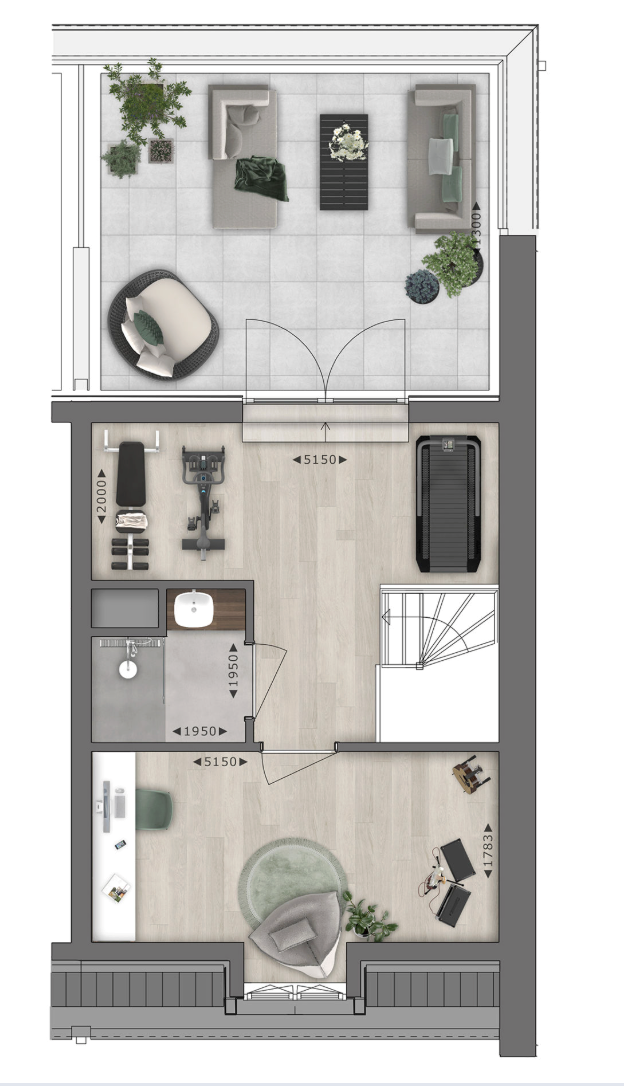 De derde verdieping biedt opnieuw volop mogelijkheden. Aan de achterzijde vind je een ruime, open kamer die ideaal is als werkruimte, inloopkast of speelkamer, met toegang tot een zonnig en ruim terras. Aan de voorzijde ligt nog een extra slaapkamer. Ook op deze verdieping bevindt zich een tweede badkamer met inloopdouche en wastafelmeubel.