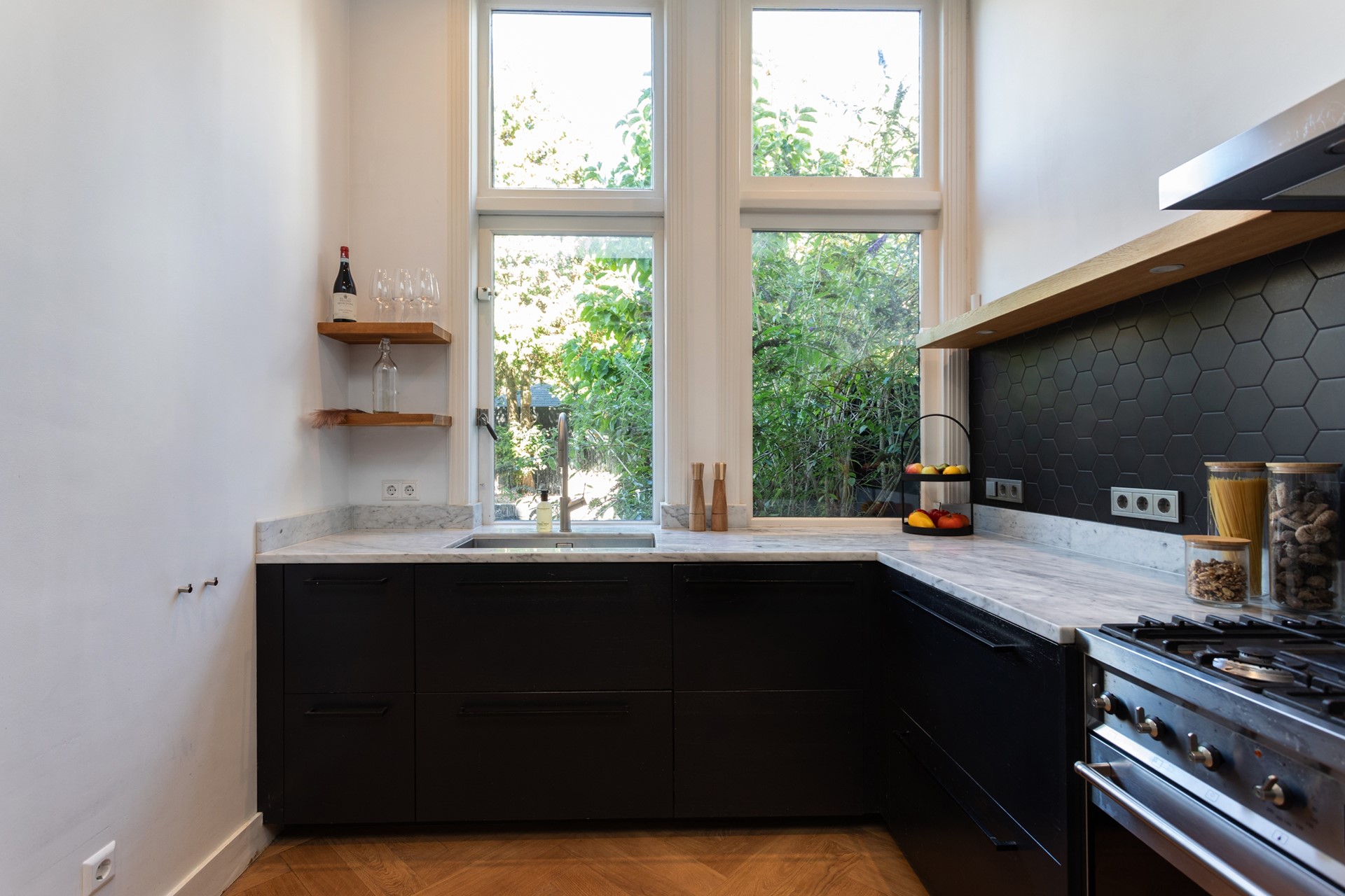 This corner townhouse exudes space and elegance, with plenty of room for a large family, working from home or guest accommodation. Thanks to the sunny garden, various balconies and the large roof terrace, there is always a nice place to be outside. A rare opportunity to buy a house where history, luxury and living pleasure come together harmoniously in the heart of the beloved Duinoord.