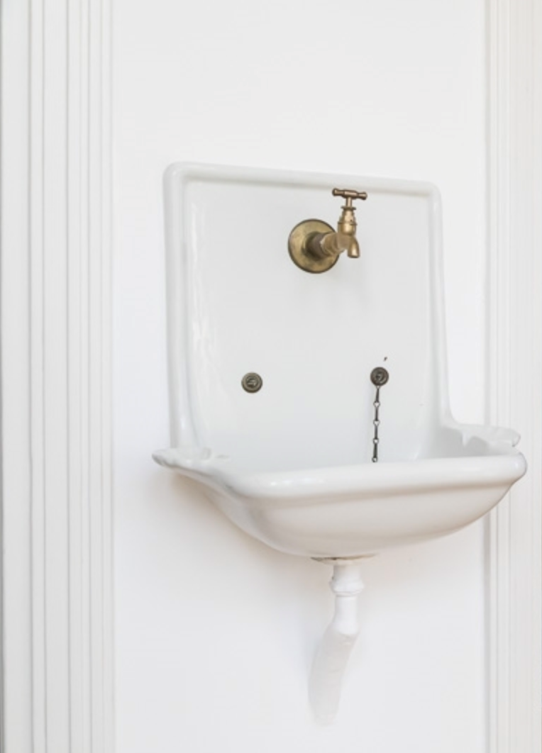 Vierde toilet bereikbaar vanaf de overloop. Authentiek fonteintje in originele staat behouden.